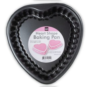 Create a sweet heart-shaped cake with this Heart Shape Baking Pan made of durable metal. Perfect for Valentine's Day, birthdays and other occasions. Scalloped edges inside the pan make a detailed, pretty heart-shaped cake. Dishwasher safe. Measures approximately 11" x 10.5" x 1.75". Comes loose.,Heart Shape Baking Pan,