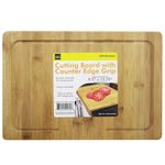 The Bamboo Cutting Board with Counter Edge Grip helps collect food juice in the perimeter groove to prevent it from spilling on your countertop. Made of 100% durable bamboo. The board lip helps keeps it in place while you chop, cut, and prep your food. Also makes a great charcuterie and appetizer board. Measures approximately 9.5" x 13.75". ,Bamboo Cutting Board with Counter Edge Grip,