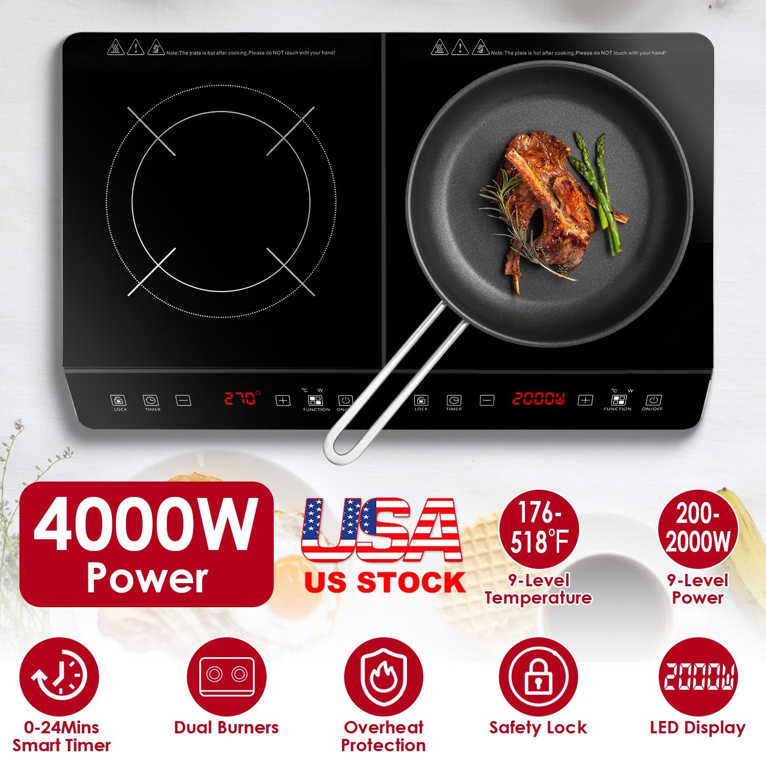 4000W Induction Cooktop Portable Double Induction Cooker Electric Dual Burner Stove Countertop Hot Plate with 9 Power 9 Temperature 0-3H Timer