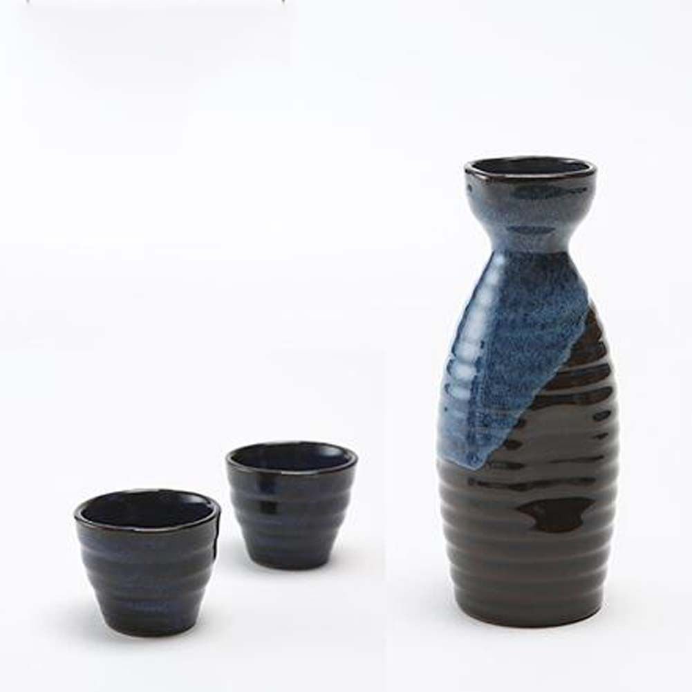 3-Piece Traditional Ceramic Japanese Sake Set Sake Cup Wine Cup Set, Black Blue 3-Piece Traditional Ceramic Japanese Sake Set Sake Cup Wine Cup Set, Black Blue