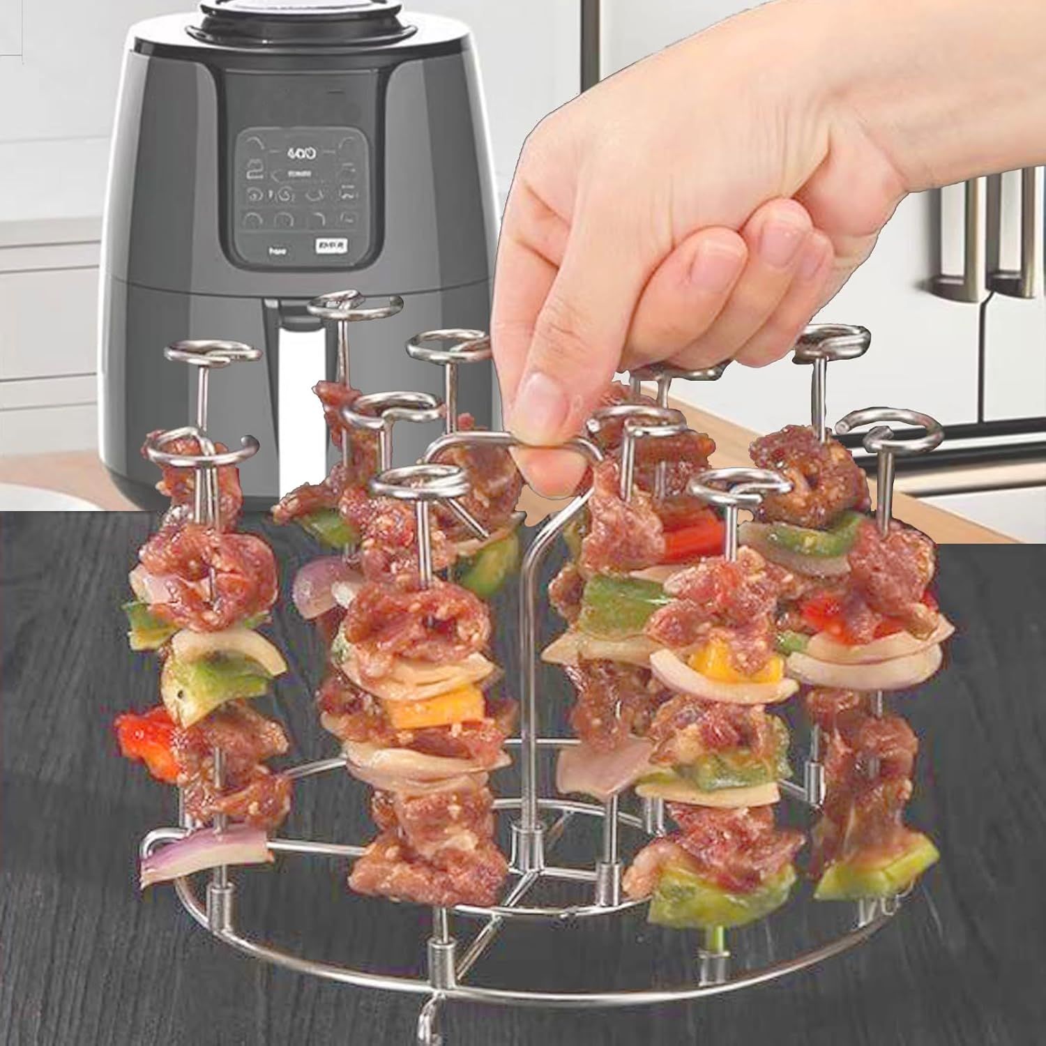 Home > Skewers for Grilling Metal Kabob Skewer Air Fryer Stand Compatible 6QT Air Fryers for Grilling Home Kitchen Kabobs Appetiser, Fruit, Party