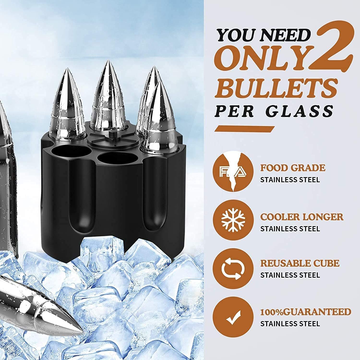 4.Quicker Chilling Effect - The whiskey stones bullets are 100% safe product. with the special coating and premium 304 stainless steel.